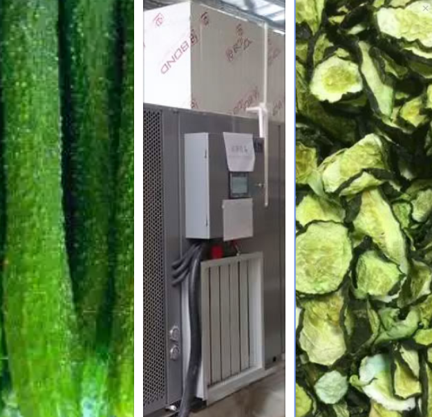 1:空氣能黃瓜片烘干機(主機有5~75度智能控溫、可調性智能新風除濕、冷凝除濕等功能)